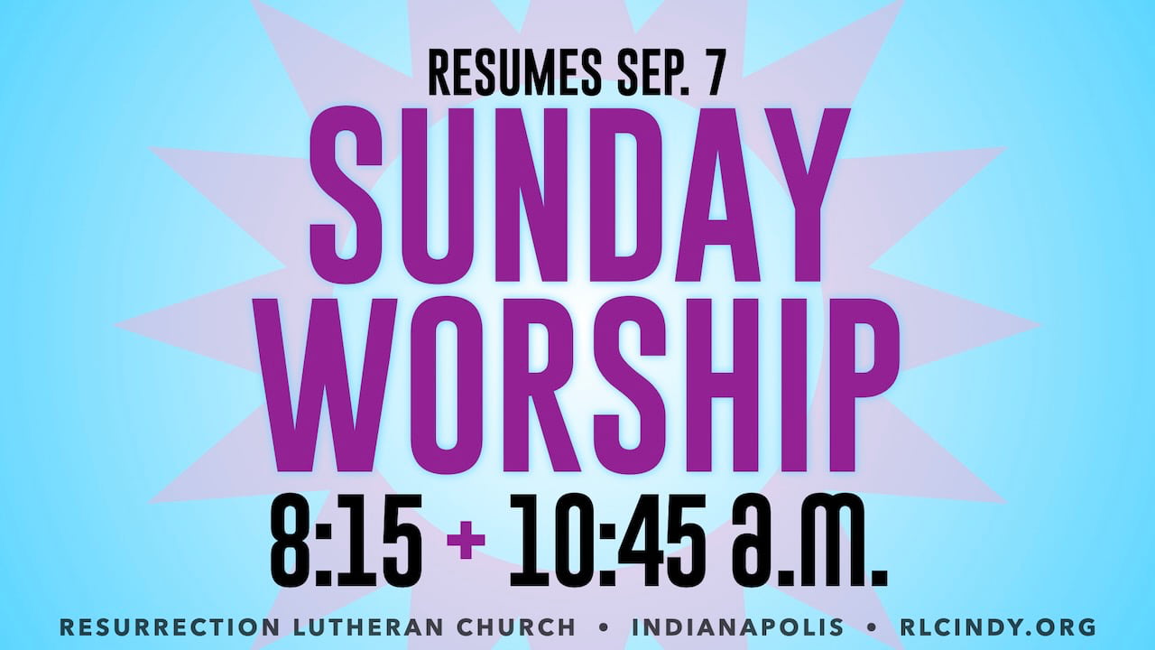 Starting Sunday, Sep. 7, Resurrection resumes our Sunday morning schedule: